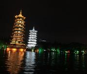 桂林两江四湖景区游,空调船夜游漓江、桃花江、榕湖景区、杉湖景区、桂湖景区、木龙湖景区风景迷人。榕湖到桃花江底下管子排水,木龙湖到漓江穿做电梯,都是亲身体验水涨船高。水上微风徐徐两岸灯光摇曳歌舞升平,只是说是豪华游船却只是臭臭的游船有点可惜