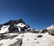 虽说玉龙雪山地势很高,但是依然阻止不了那些有着勇敢者的心的游客,欲登顶的游客很多,由于上山的道路很窄,所以需要注意安全。在这蓝天白云雪山阳光下的美景之中,感觉时间都停止了。在蓝月谷旁边走变拍照,拍出来的都是大片!!