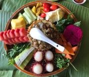 野象谷看完大象后,去体验野象谷的象餐! 以大桌为主,好多团队来用餐,没有发现散客! 一个大果盘,搭配7种左右小菜!吃饭过程中有服务员来回加菜,加饮料! 饭菜质量怎么说呢,还行,能吃!!这里的餐分两种!素餐和肉餐!素餐是50元,肉餐貌似80,多一些烤肉啥的!我们吃的素餐!还不错!