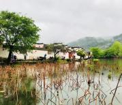 从旅游大巴下车就是从南湖处入园的,不大的湖却给这座徽州古村增添了别样的美,天空下着零零星星的雨,在南湖上泛起层层涟漪,雨后的宏村太美了