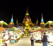 到达告庄西双景是夜幕降临。此时的街头已是好一番热闹景象!到处霓虹闪烁,街边各种摊贩都出来了,各种肤色的游人也是来来往往、人头攒动!车子在这里根本开不太动,我们好不容易找个偏僻地方才把车给停了!从停车处到大金塔,再到星光夜市,处处都是流光溢彩,真是亮瞎人眼睛!