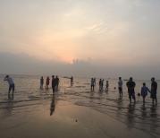 我们就在止锚湾着玩的,浪小人多,水挺暖喝的,小宝宝还能接受,水不是很干净,但是喜欢玩的人可以往里走,里边还有一个海滩,水比较干净,浪大,人没那么多。色还可以,海水很咸,不算清澈,趣味性很强,性价比还可以。