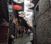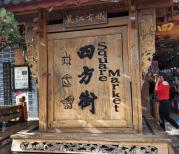 四方街的街心向四周延伸出四条主街,分别是七一街、五一街、新华街和东大街,每条街道又分出许多小的街巷,街巷相连,四通八达。四方街周围小吃食肆遍地,随便逛逛都可以吃到不少纳西特色的美食。旁边的新华街就是丽江的酒吧街,每天晚上,酒吧街上灯火通明,游人如织,一片欢乐。无论是白天还是夜晚,在四方街都不会感到寂静。