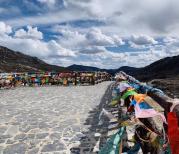 卡子拉山是位于四川省雅江和理塘分界处的一座山,海拔4718m,常年高寒缺氧,山表面主要是高山草甸,树木稀少。随处可见的经幡。因为离云层近,被云朵遮住了阳光,山上的植被一块明一块暗,远远看去,好像中国军人的迷彩色。