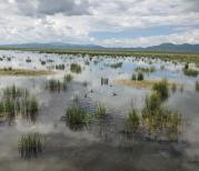 站在花湖边,可以看到碧波万顷的湖水,湖面虽然没有很多高原湖泊那样蔚蓝清澈,但是湖中的一排排草垛还是让人感觉很有意思,尤其晴天时风景最佳,偶尔飞过一排候鸟,惊起水花阵阵让人欢笑