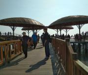 星海广场大连非常有名的地标性广场。感觉大连的特点就是广场非常的多,星海广场是最有名的。可以来这边看看海哦,散散步。有音乐喷泉。晚上的效果特别棒。