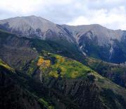 从318国道往四川方向走,过了东达山后有一座叫觉巴山的大山,海拔高度降下来了,只有近4000米,所以植物就长大了,最运气的事,下山口时遇上了彩虹,而且是二条,只是拍不好。