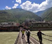 走在湍急大渡河上的晃悠的泸定桥,想想看当年红军强渡时真不容易!过桥后对面的寺庙里的老太太真是很淳朴,拜一下菩萨就在旁边敲一下钟。泸定桥碑旁边的青稞花花店里的青稞酥味道真不错,看起来也很卫生,是现场制作的,也不贵,买了2袋。回到成都就吃完了,准备在网上再买几袋。