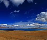 佩枯错,湖水南淡北咸,开阔的湖盆、碧蓝的湖水与希夏邦马峰的雪山倒影交相辉映,形成粗旷的高原风光