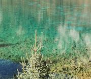 五彩池位于四川省阿坝藏族羌族自治州九寨沟县九寨沟景区内,池水颜色太漂亮了,宝石蓝墨绿青,还有银杏黄,五彩斑斓 ,水底的植物也能看的清清楚楚,难怪称它为五彩池。