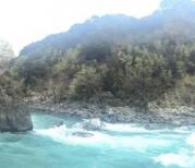 尼洋河中流砥柱像一个柱子一样阻挡住河水,这里河水非常漂亮,尤其是水清的时候,宛若一枚玉钮。
