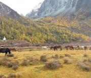 洛绒牛场是一个多功能综合自然景区,在这里你不仅能看到当地放养的很健壮的牛马群,还可以观赏这里美丽的雪山景观,非常喜欢这样有层次感的视觉效果。