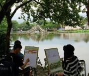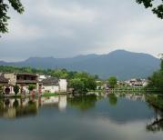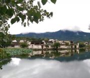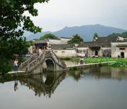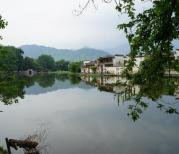 南湖就在宏村入口处,一泓池水映照着蓝天白云,映照着来来往往的人群,清澈的倒影,随影伴人,显出多样的色彩。一条直直的小道连着一座弯弯的拱桥,一直延伸进村里。清晨,游客还没蜂拥而至时,薄雾轻拂远山,池水波澜不惊,淡淡的炊烟升起,偶有鸡鸣狗吠,柴门咿呀,这份清净真难得。