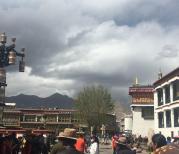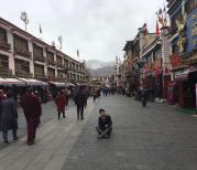 八廓街这里进入核心区还是需要安检的,围绕着大昭寺的街道其实好像一个圆圈一般,可看到很多朝拜的虔诚信徒在这里真的走三步就磕头。两边有很多各式各样的商店和餐厅,大部分的建筑都是咱藏族的风格,道路南侧的部分还有大昭寺作为背景,很多人在这里祷告。