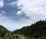 我们决定从那拉提走进传说给新疆最美、最险、最俊的独库公路。加满油,调好音乐,我们就上路了。一路开车一路感叹,那拉提附近的嫩绿如茵的山体草原,悠闲自在吃草的马、牛、羊,还有苍翠挺拔的杉树,接下来就是各种弯道,连续上山或者连续下山,旁边的悬崖峭壁实在是太刺激,只能远远的看一眼。开到路程一半左右,有一个奶绿色的湖出现,太美了,大家就纷纷停车去拍照。接下来穿越各种隧道,翻过几座山后,山体已经不再那么绿,旁边散落着一些掉下来的石头碎块。路上经常会遇到羊群,牛群,马群甚至骆驼在过马路,轻轻鸣笛防止撞到车上就行。后来开车到了雪山上,之前一直仰望的雪山,终于可以摸到了。兴奋的不要不要,接下来就连续盘山下坡,一