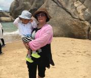 天涯海角淡季票价,电屏车15一人有点坑。。。通往天涯石的路正在施工,所以只能从沙滩上步行500米,可怜我们带小朋友的还有推车,在沙滩上推车太艰难了。景色还是不错,就是沙滩上太热,这还没到大夏天的