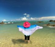 西岛景区景色很美,海水也很清,看得见海里的小鱼,天气很热,人很多,忘了带泳衣,挺遗憾的,买了四张票,去了两个大人,两个孩子,孩子小都不用票,有两个人临时去不了,票都浪费了,网上1元票很给力!但岛内真的每样都需要!