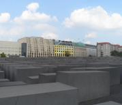 欧洲被害犹太人纪念碑的设计非常大胆,广场上超过三千块平滑巨大且灰暗的混泥土块,好像述说着数百万被害的犹太人无辜地在战争中被屠杀,行走在方方正正、巨大无声的混泥土块之中,令人觉得毛骨悚然、战争的可怕。