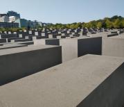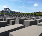 位于柏林市区的欧洲被害犹太人纪念碑是一大片的高低不等的水泥长方形柱子组合而成,设计也很巧妙依据地型的变化。暗灰色的水泥森林显得庄严阴冷。走在里面感觉一阵无形的压力,又像迷宫似的