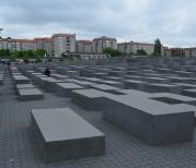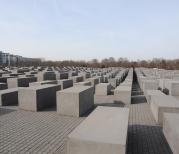 犹太人大屠杀纪念碑群,艾森曼的设计从根本上打破了纪念碑的概念,放弃了任何一种象征性符号的使用。由2711个水泥碑组成的网状通路有许多出入口并可供参观者任意穿行。2711这个数字是建筑师根据纪念地的面积而定的,它没有任何象征意义,与被害者数目也毫无关联。碑体的材料是十分坚硬的灰色自动密封式混凝土,碑体的生产是在柏林附近。为保证碑体表层的质量长久不衰,在生产过程中采用了多层加工方案,这样也可方便地清除涂鸦痕迹。由纪念碑群的东南侧沿台阶或乘电梯可到达一地下信息厅,展厅的设计风格与碑群的块状外形风格相一致,介绍了有关被害者、受难地及今日各纪念地的信息。这个博物馆是免费的,并有中文的介绍。根据艾森曼计划