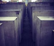 犹太人大屠杀纪念碑群,紧邻德国联邦议院和勃兰登堡门,由2711根长短不一灰色碑柱组成。静想其设计绝妙寓意深刻。置身其间犹如迷宫,远远望去好似波浪。每块石碑都无任何文字标识,是无数亡魂在无声哭诉;材质坚实厚重形如棺材。步入其中,无尽而单调的形状,让人不由得陷入沉思。