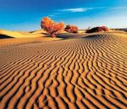 塔克拉玛干沙漠(维语:تەكلىماكان قۇملۇقى)位于新疆南疆的塔里木盆地中心,是中国最大的沙漠,也是世界第十大沙漠,同时亦是世界第二大流动沙漠。整个沙漠东西长约1000公里,南北宽约400公里,面积达33万平方公里。平均年降水不超过100毫米,最低只有四五毫米;而平均蒸发量却高达2500-3400毫米。这里,金字塔形的沙丘屹立于平原以上300米。狂风能将沙墙吹起,高度可达其3倍。沙漠里沙丘绵延,受风的影响,沙丘时常移动。沙漠里亦有少量的植物,其根系异常发达,超过地上部分的几十倍乃至上百倍,以便汲取地下的水分,那里的动物有夏眠的现象。