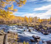 三潭峡位于阿尔山市东北78公里处,在天池景区内,是哈拉哈河的上游,与天池山遥相呼应。河床由岩石组成,湍急的哈拉哈河从河谷穿过,珠飞玉卷,波平如镜的卧牛潭、虎石潭和悦心潭三处潭水。 冬天的三潭峡全都被雪覆盖住了,难怪冬天的阿尔山好萧条。峡谷有三潭,故称三潭峡。 三潭依次为卧牛潭——河水平稳,潭前大大小小的卧牛石横河摆放,如庞大的牛群静憩河中;虎石潭——平静的潭水上方,河流中密布着形态各异的巨大岩石,宛如虎群在河中玩耍嬉戏;悦心潭——是峡谷的尽头,地面豁然开朗,河面加宽,潭水透明,清澈见底。