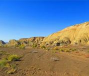 五彩灣同五彩城一樣都是雅丹地貌。五彩灣的美在於河堤兩岸景致的巨大反差。如果是日出或日落時分應該更為壯麗。 通常旅行團傍晚去,我中午去,時間不對。