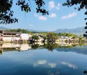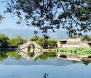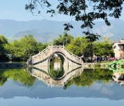 晨雾缭绕,旭日初升的宏村南湖~画桥~宛若仙境,流连忘返![太阳][太阳]宏村,如诗如画的美景,让人沉醉其中,不禁感叹确实不虚此行,一切的决定都那么值得!蓝天白云下的画桥美到极致,空无一人让我都不敢相信自己的眼睛!热爱生活的人最幸运![太阳][太阳]