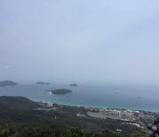 从三亚湾坐了一个小时公交车到了亚龙湾热带天堂森林公园,带着宝宝去玩,一心想着走一下过江龙索道,结果宝宝不到一米,不允许走,孕妇也不行,所以只能下来了,好遗憾。但是风景还是很美的,俯瞰亚龙湾。出行之后,发现我定的这个联票还是很值。山顶的咖啡也很不错,值得购买。山顶的商业街也很好。