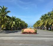 天涯海角是我们来三亚玩的第二处景点,它和南山寺一条路线。我们从大东海广场出发,坐55路公交车14元/人(小型大巴车,座位宽,空调足),全程70分钟左右(可能是淡季加高考期间的关系,之前看攻略有的人都坐90-100分钟)。公交站台旁有很多人拉客,我们没有理会,害怕是黄牛,出远门还是坐公交车最靠谱最安全,打车嘛,路途有点远,价格也贵。到了景点门口,先去上了个洗手间,真是大爱,居然有空调耶,让潮湿的身体立马凉爽起来。进去后才知道里面所有的厕所都有空调,太人性化了,这个关爱我给100分!我们在网上买的票,很方便,用短信收到的二维码直接扫码进园,孩子1.2m不要钱。