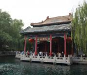趵突泉面积不大,就是一座小公园,环境清幽,泉水叮咚,倒也别有一番独特的韵味。此乃夏日消暑佳地。主要是看“第一泉”,那边人最多。泉中有三个泉眼,好在也是“咕嘟咕嘟”冒,我是第一次见泉水,倍感神奇!泉水清澈见底,水清清鱼乐乐,