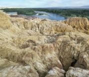 三潭峡位于阿尔山市东北78公里的哈拉哈河上游,由映松潭、映壁潭、龙凤潭三个深潭组成。峡谷长约3公里,湍急的哈拉哈河从河谷穿行,珠飞玉卷,火山熔岩布满河床,水深处波平如镜,难见其底,水浅处人可踏石涉水而过。