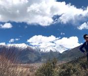 318国道川藏线色季拉山,一路山峰上已有积雪,在色季拉山垭口,远处的南迦巴瓦峰在云层间露出她优美的腰际线。沿着念青唐古拉山脉和喜马拉雅山脉之间的雅鲁藏布江往东南,向着神山南迦巴瓦峰一路前行,路过中国第54个民族门巴族聚居的村庄,神秘而安静的高原田园风光。这个季节南迦巴瓦峰多云,居然很难得地露出九座山峰全貌,不过稍纵即逝。面对神山圣水,虔诚的心。