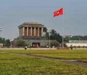 巴亭广场位于越南河内的市中心,面积还是很大的,大约有北京天安门广场那么大,它的西侧是胡志明主席的陵墓,旁边是胡志明主席的旧居以及博物馆。还是很值得前去的。