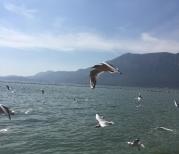 冬季的滇池非常漂亮,周围的树木也是绿草成荫。海鸥成片。很多游人在这里喂海鸥,重点是这里免费啊,但是这里有一个特色,大家都想模仿海鸥的声音来调戏海鸥,整个滇池湖畔一片鬼哭狼嚎。