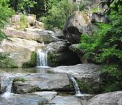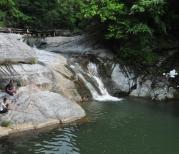天堂寨这里是天堂寨景区内的核心景点,进门可以选择搭乘景区接驳车到白马大峡谷下。然后步行下山。或者选择步行上山再坐车下山也可以。下行的部分台阶较陡,峡谷谷底较宽,一路可以欣赏小桥,小清潭等等。森林覆盖率高,空气较好。