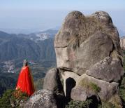 九华山索道站下去以后,我们先到十王峰,索道站出口右手边有个指示牌,这条路上人很少,风吹的很凉快,上到十王峰,往下就是天台寺,然后一直下到索道站,会经过古拜金台,大脚印。索道站下车之后转景区公交下到虎形山。从公交车站出来过省道,到景区入口处,