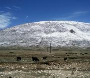 之前翻越雀儿山遇上的雪地烂路加高反还让我们心有余悸,前方又到了咱们西藏此行遇到的第二座超5000米高山―东达山。我选择了大清早出发,留充裕时间去耗山路!沿路而上天空湛蓝、空气清新,目之所及处处绿意盎然,心情很爽快!随着不断转山而海拔渐升,感觉植被少了,离云朵也近些了,雪峰从远处出现在周围。不过还好,脑袋只是稍胀,呼吸略有急促,车窗开下点透透气,再多看看四周风景分散一下注意力也就无碍了!并且除了偶有碎石散在地面,路况也比雀儿山好得多!一处观景台周围还有购物点,几台大巴车下来的旅客们都在拍雪景或购物,使得这么高海拔的地方人气还挺旺!