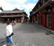 四方街位于古镇中心,以前是茶马古道沿线马帮贸易的集散地。中间的四方空地像一个小广场,四周全是商行客栈,每个角各通一个街道,将古镇的四个方向连到这里。