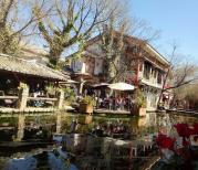 束河四方街,位于束河古镇西北侧,是束河古镇的中心集市。四方街上,一条青龙河流过,两旁街道商铺林立,适合闲逛,吃饭,晒太阳。束河四方街与丽江古镇(大研古镇)相比,我个人更喜欢束河。这儿人少,安静,商业气氛没丽江古镇浓烈。逛累了,择一河边餐馆就餐,静坐河边餐桌,边吃边欣赏周边美景,放松心情发呆,很是惬意!