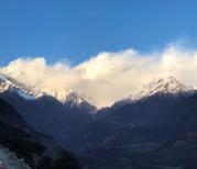 传说一年只有30多天才能看到南迦巴瓦峰,我们很幸运的看到了,又蹦又跳的在这里照了一张照片,个人感觉太兴奋了,她们说就是这样有云的气候反而容易看到。