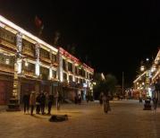 这次的酒店就在八廓街里,出门一拐就到了刷身份证进入在大昭寺地界外围的安检门。晚上十一点时才得空进入,但也正好可以用安静的视角体验这藏文化风情。有磕长头的藏民,手中的木片在趴匐到地面时在深夜发出虔诚的声音;有时尚的汉族小姑娘穿着藏服在羞涩地凹造型……深夜的八廓街似乎更能体现出她的风情。