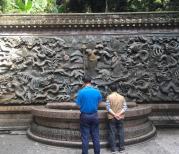 王宫博物馆——寮国末代国王瓦达纳国王和他的父亲冯国王都曾经住在这个皇宫之中。寮国革命以后,国王被推翻,寮国不复存在,改名为老挝人民民主共和国,末代国王在劳改营结束一生,这段历史并没有在这个博物馆中展示。在寮国时期,国家尊佛教为国教,国王也必须信仰佛教。所以这就不难理解,为什么整个皇宫修建的和佛堂一样。整个宫殿金碧辉煌,可想当年的壮观。整个博物馆展出了国王和王后的各种私人用品,以及老挝传统佛教的遗产。看到一块石碑,最早是公元600多年的,石碑用梵文撰写,那是正是中国隋唐时期,也是佛教蔚然成风的朝代。除了这些,还有一些其他国家赠送给国王的礼物作为展示品,其中就包括了我们中国的很多礼品,当然是瓷器,