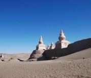 黑城遗址是现存最完整、规模最宏大的一座古城遗址,虽然已有过半的遗址被埋于沙土之下,却丝毫不掩盖它的魅力。落日时分,远眺这一个又一个残破的遗址,千姿百态,顽强地屹立在沙漠之中,宛如一个个披荆斩棘的战士,令人震撼不已。