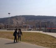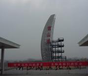 水泊梁山东边山坡下水面上是一艘仿真的宋江战船,重现当年梁山水军驰骋八百里水泊的场景。右侧高处耸立着花和尚鲁智深与行者武松两人雕像,尽显“禅杖劈开危险路,戒刀杀尽不平人”的英雄气息。