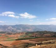 吃过午饭之后就开始欣赏东川红土地的风景了。这边可以有两个方案,第一,你可以选择包车去每个景点,也可以选择步行。包车的话,比较费钱(可以找遇到的旅友拼车,比较划算),但是去的景点比较多,到了每个景点,司机都会停车让游客拍照,步行的话,每个景点都是挺远的,比较费时,不过可以更好的欣赏沿途的风景。到红土地的当天下午主要景点去了落霞沟看日落。告诉大家一个好消息,落霞沟正在修路,马上就要开始收门票了