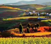 东川红土地景区拍摄最佳时间是每年的5月中旬到6月上旬、十月中下旬到11月。位于昆明市以北偏东方向,属昆明市东川区管辖下的红土地镇。它那天然的红土壤被。普普通通的农民随意耕作的各色庄稼,立马织就成一幅幅水灵水灵的,五彩缤纷的水彩画。尽管我们去的季节不是最佳的,但映入你眼帘的美依旧令人惊叹,疑是鬼斧神工。