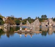在大理古城参团到石林,九乡一日游,在这蓝天白云,阳光灿烂的日子里出游,令人心清气爽,进入国家地质公园_石林,看到了形态各异的石林,让人叹为观止哪!导游解说着各种石头的典故传说,更为这壮观的石林添加了神秘的色彩,实感不枉此行。 到了九乡更是令人惊叹不已!流光溢彩的溶洞内,自然形成的熔岩、溶柱、溪流、瀑布……可谓是鬼斧神刀的绝妙画廊。多彩的云南,值得点赞!