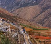 昆明开车过来东川红土地大约三小时,神奇的大自然调色板。我们去的那天是大晴天,有云雾或是雨后初晴的天气拍照更精彩。落霞沟已经造好木栈道了,估计不久就会开始收费了。摄影爱好者会选择住一晚,早晚的光线会更好些。当地的住宿就是农家乐,据说有两家四星级酒店已经在规划中了。